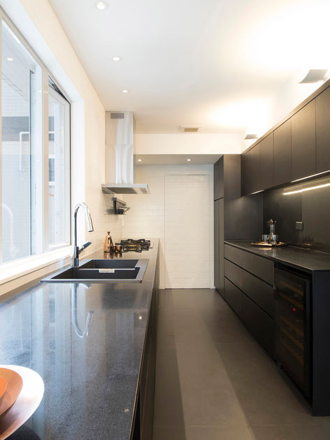這是一個四口之家,住着一對夫婦與他們兩個女兒。 Chill Interior design 刻意減少起居室儲物櫃的數量,真正的是為空間「留白」。而「巨型」的餐桌、掛畫、鏡子等家具,有助拉闊空間之餘,亦為這個家帶來戲劇性的效果。